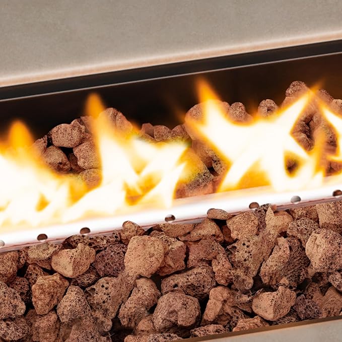 - π₯ γ SUNDOWN, FUN UP γ: When the sun sets and your outdoor paradise begins to cool a bit, no need to go inside. Light the fire pit table and warm up the patio night! You can even serve an intimate dinner for four right on the spacious ledge surrounding the warm glowing lava rocks. What could be cozier? Clean burning propane flame provides soothing warmth, gentle lighting and a centerpiece for many outdoor or backyard evenings worth remembering.