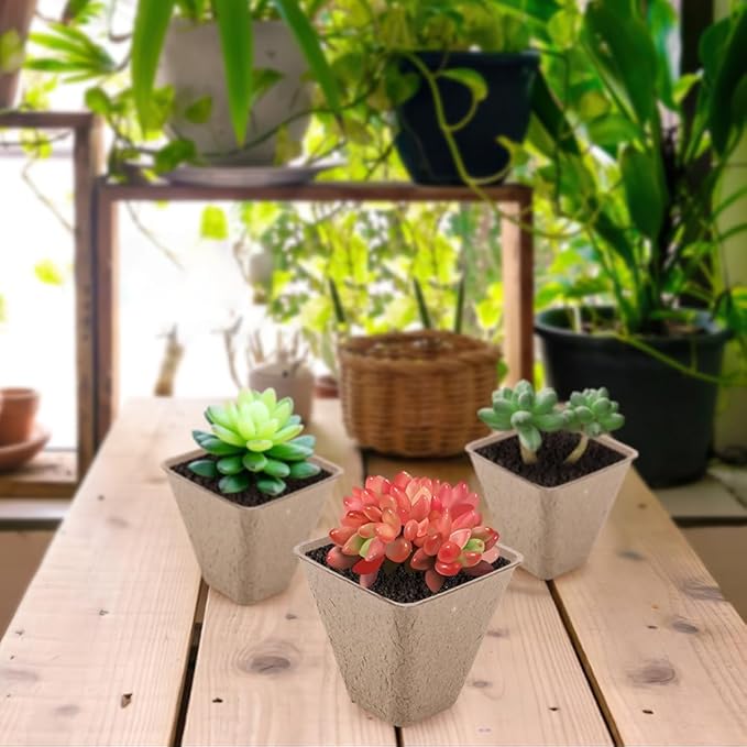 Seed Starter Trays, 174 Pcs 3.15 Inch Square Biodegradable Peat Pots, Drainage Holes Nursery Pot, (Light Brown Square)