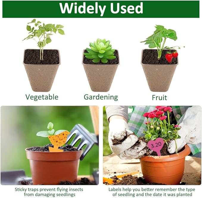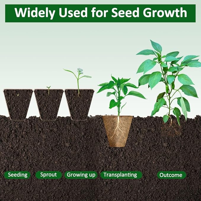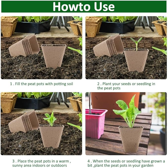 - 1. Every package 174 pcs organic biodegradable seed starter pots, Every peat pots measures 3.15 inch depth and top diameter.