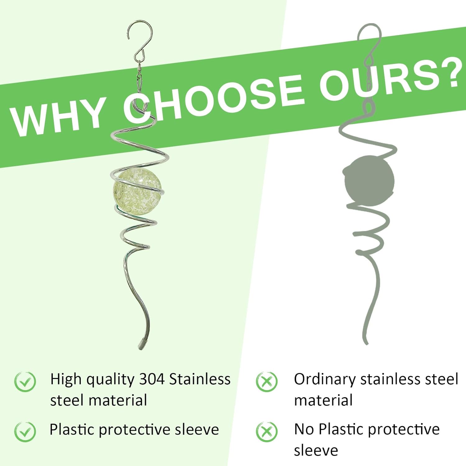 - 【DURABLE AND ATTRACTIVE】:The gazing ball spiral is an unique hanging ornament ,Also it can help to stabilize 3D wind spinners or yard decor from swing when it rotate. The glass ball seems to move up and down like floating and dancing in air while spiral tail rotating, presents the magical visual illusion, can help calm and relax the mind, reduce anxiety and allow to better focus your mental attention.