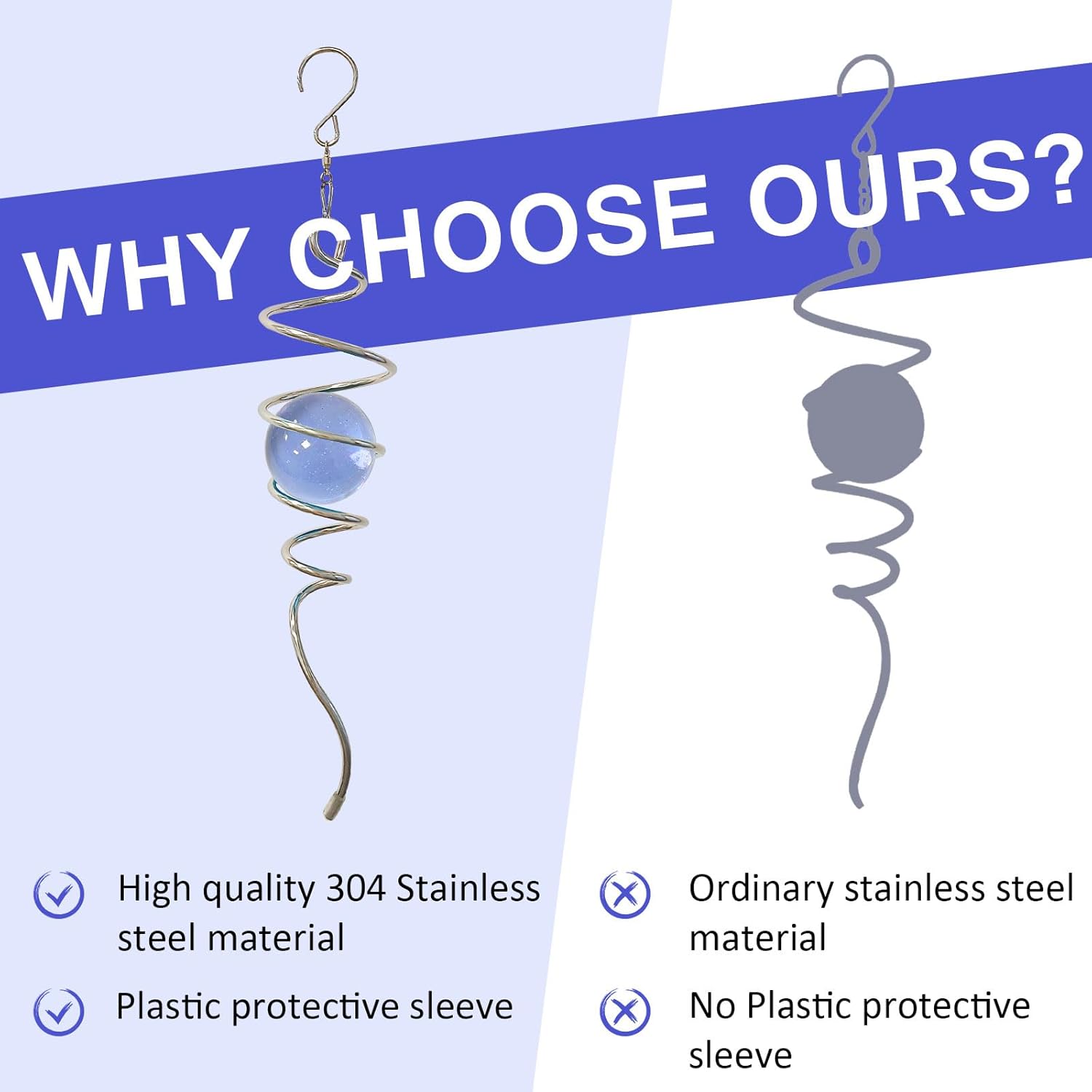 - 【DURABLE AND ATTRACTIVE】:The gazing ball spiral is an unique hanging ornament ,Also it can help to stabilize 3D wind spinners or yard decor from swing when it rotate. The glass ball seems to move up and down like floating and dancing in air while spiral tail rotating, presents the magical visual illusion, can help calm and relax the mind, reduce anxiety and allow to better focus your mental attention.