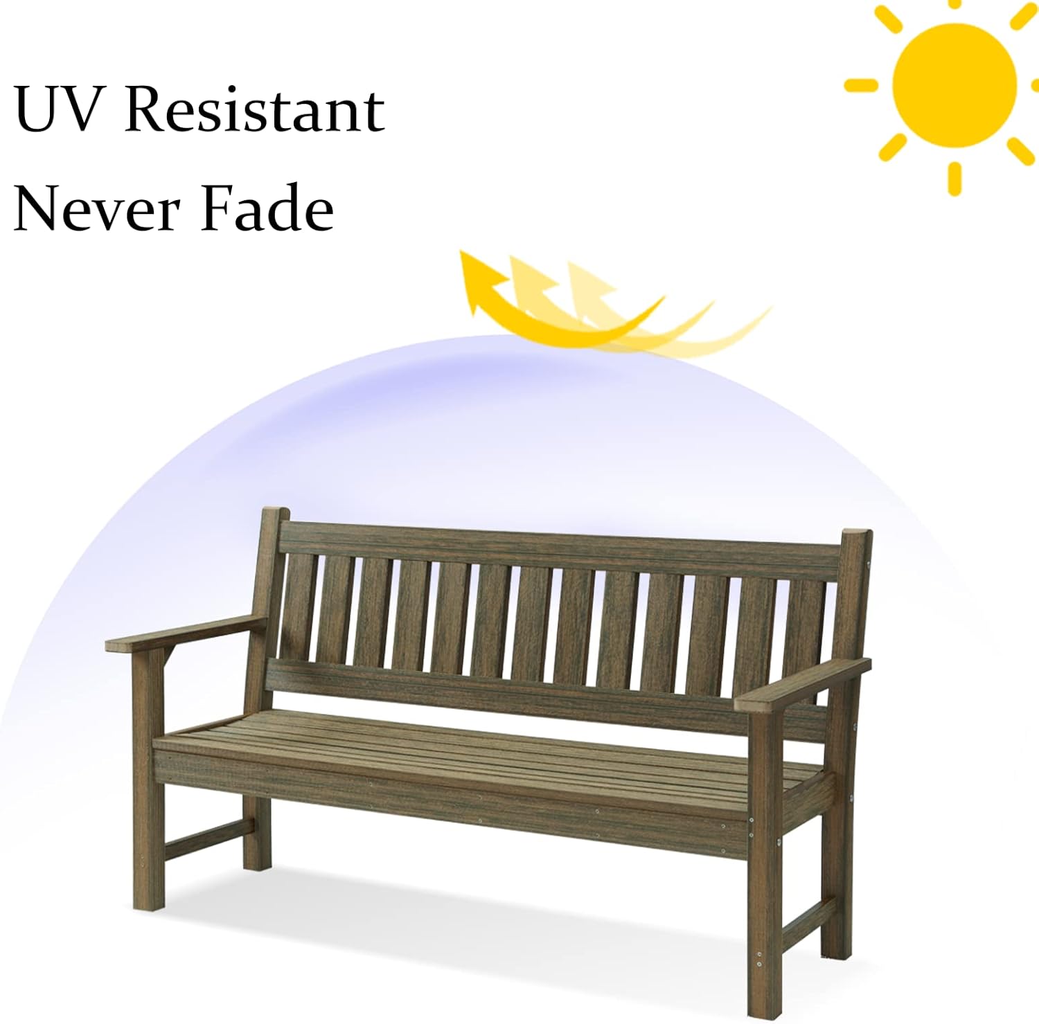 Outdoor Bench, 3-Person Garden Bench, Poly Lumber Patio Bench for Outdoors, Porch, and Park (Light Brown)