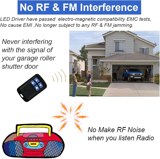 - 🌞【No RF & FM Interference】8ft r17d led tube light Driver have passed Electromagnetic Magnetic Compatibility EMC tests,No cause EMI ,No longer subject to any RF & FM jamming. Never interfering with the signal of your garage roller shutter door,No make noise when you listen to a radio
