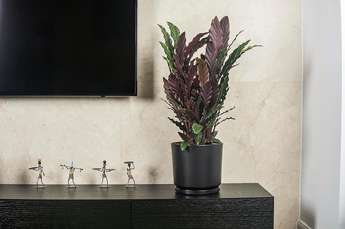 Ekirlin 9 inch Plant Pots,Ceramic Flower Planters Indoor,Modern Succulents Containers with Drain Hole Saucer,Decorate Home,Office & Outdoor (Black)