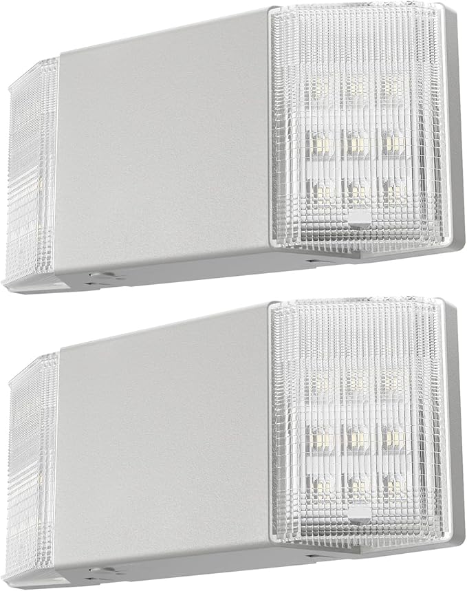 Spectsun 2 Packs Hardwired Emergency Exit Light Fixtures for Business, with Battery Backup, Two Head Adjustable LED Emergency Lighting, UL 924 Certified,AC 120/277V.