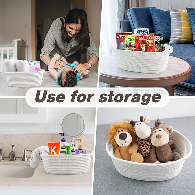 - 【Storage Basket】Our small rope baskets are great helpers for storing baby items, toys, books and pet toys. The opening design allows your cat or dog to easily access the toy. It can also store some office supplies to make your desk more tidy