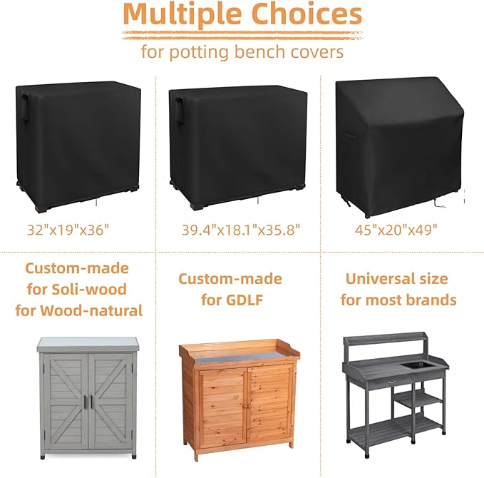 - PREMIUM MATERIAL: This outdoor potting bench cover is made of waterproof oxford fabric, which is anti-wear and durable enough to provide your garden storage cabinet ultimate protection when not in use.