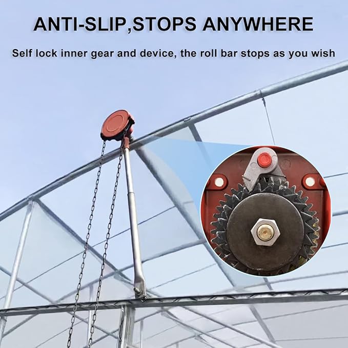 UYGALAXY Manual Winch Greenhouse Film Roll Up Roof Unit for Ventilation Agricultural Manual Film Coiler Device Side Top Film Coiling Rolling Blinds Machine(13ft Circumference Chain)
