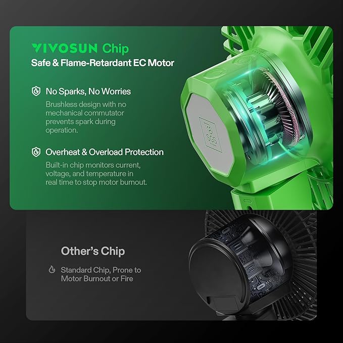 - Auto Oscillation: This clip-on fan supports 90° horizontal automatic oscillation with 80° manual vertical adjustment
