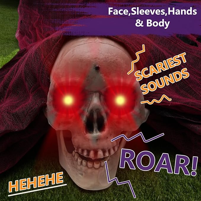 - 💀Broad Adaptation-Sound and motion around this groundbreaker will activate the creepying sound and flashing its red eyes.Perfect for indoor or outdoor use, in your front yard, bar, garden, patio, balcony, or wherever you want to place your prop. Great for Halloween parties.