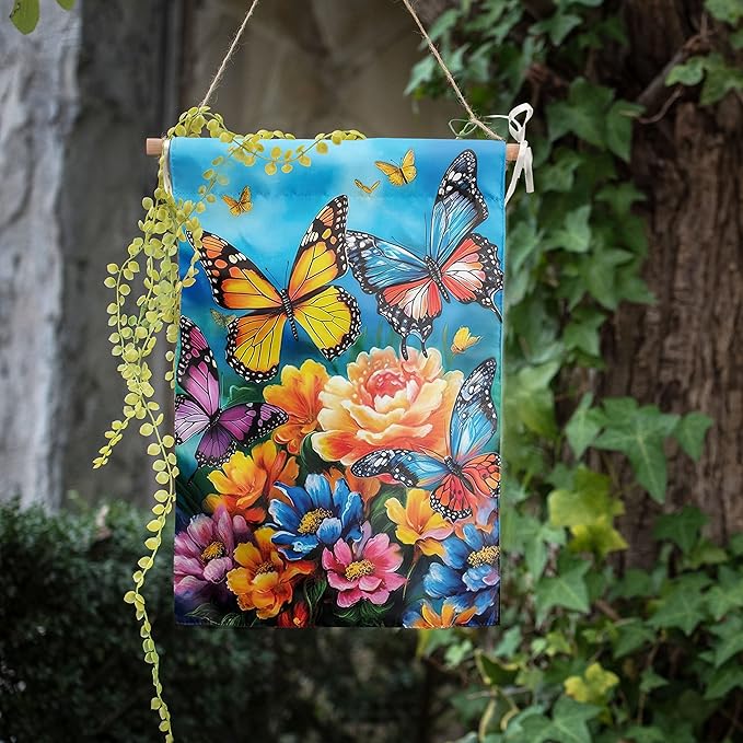 - ✔ 【Premium Quality】-- The floral butterfly garden flag is made of sturdy all-weather polyester, double layer stitching and reinforced corners improve durability