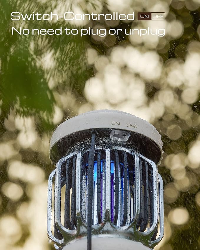 - 【📍Switch-controlled】The waterproof switch allows for easy control without the need to plug and unplug the bug zapper.