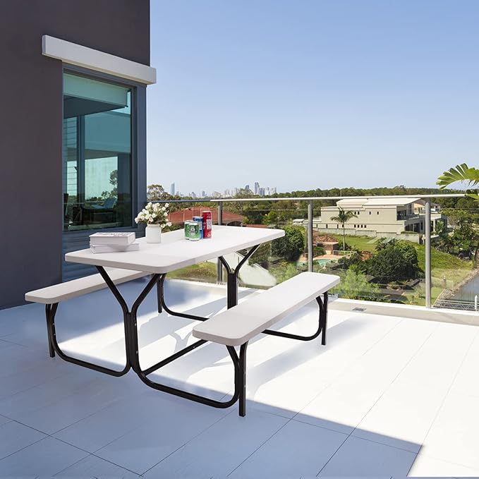 - 【Strong Steel Frame & Safety Round Corners】 Our picnic table is built with a sturdy steel frame and durable plastic material, ensuring long-lasting use. The powder-coated process is resistant to cracking and rusting. The rounded corners are designed to prevent accidental bumps, allowing you to enjoy outdoor meals for many years to come.