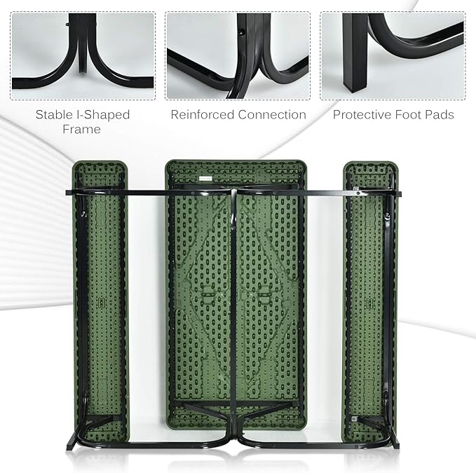 - 【Strong Steel Frame & Safety Round Corners】 Our picnic table is built with a sturdy steel frame and durable plastic material, ensuring long-lasting use. The powder-coated process is resistant to cracking and rusting. The rounded corners are designed to prevent accidental bumps, allowing you to enjoy outdoor meals for many years to come.