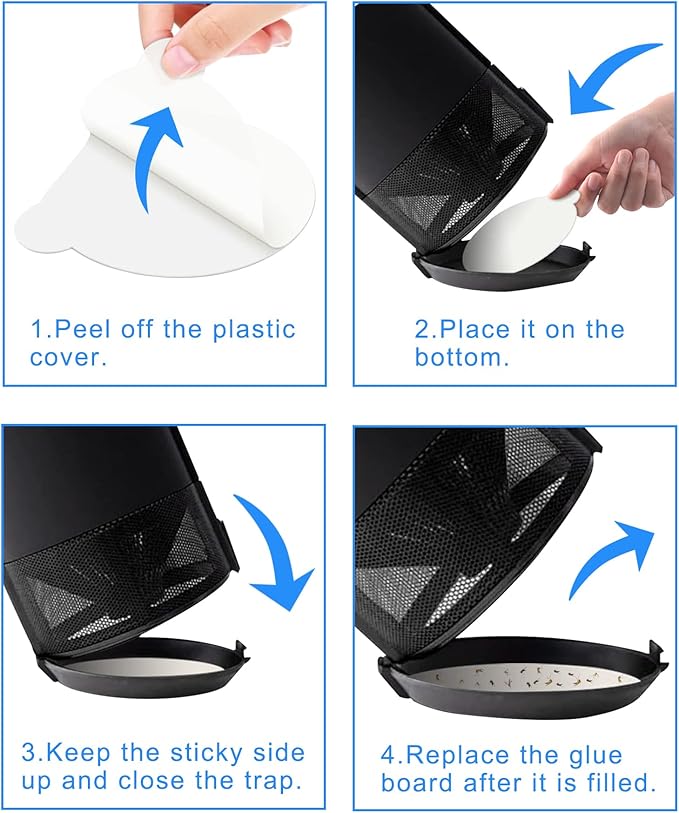- Easy to Use: Take one sticky pad and peel off the plastic cover, then place the glue board on the bottom of a mosquito trap.