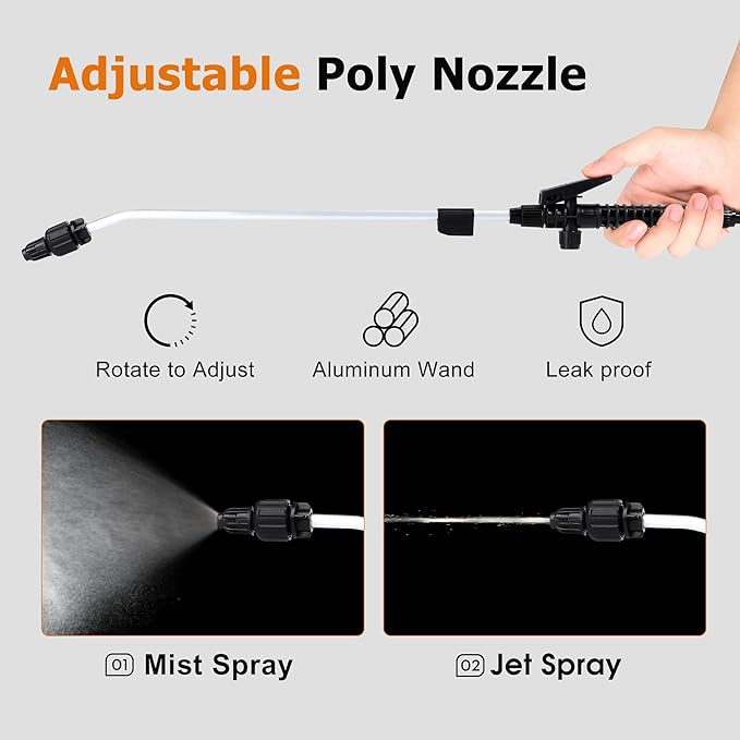 - ππππππππ π ππ πππ ππππππππππ πππππππ - Includes 2 nozzles - an adjustable nozzle for a gentle mist or powerful jet and a fan nozzle for wide, even coverage over larger areas. Ideal for both indoor and outdoor use with the 1 Gallon Pump Pressure Sprayer.