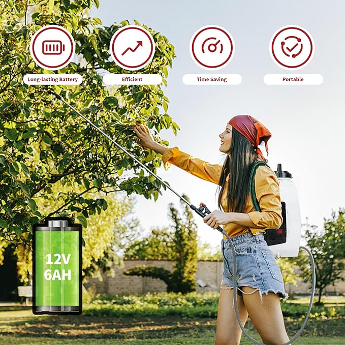 - Long-time Use: Our backpack sprayer battery powered features a 12V 6AH lithium battery is convenient and safe to charge, which can spray for 2-4 hours straight from just one charge