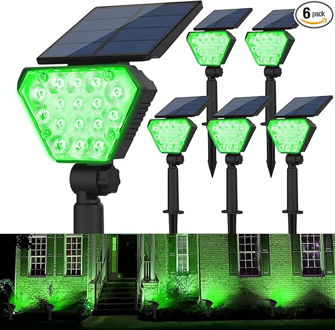 T-SUN Solar Spot Lights Outdoor, LED Green Landscape Lighting, Halloween Lights Outdoor Solar, IP65 Waterproof Spot Light, Auto On/Off for Garden/Yard/Pathway/Patio (6-Pack)