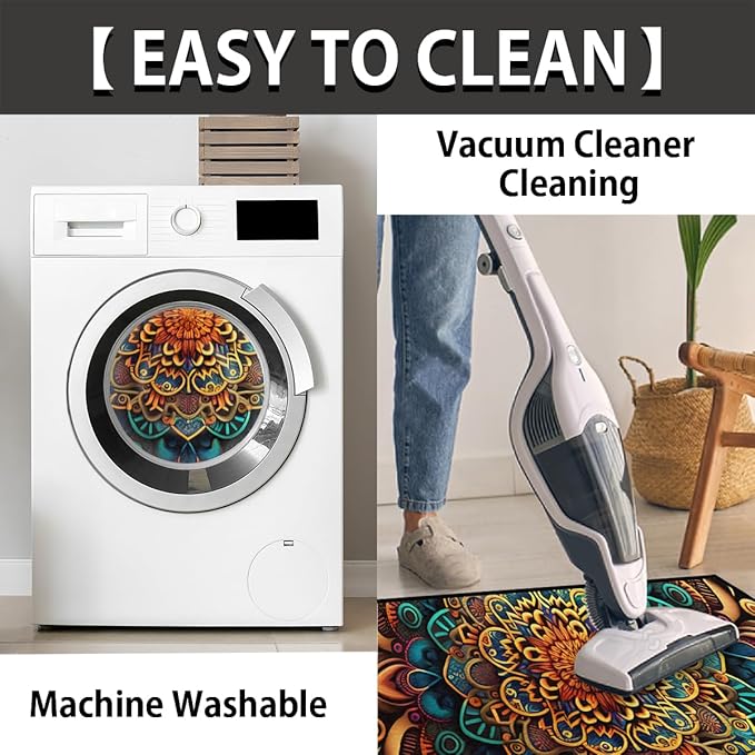- EASY CARE: Floor mat is easy to clean, just vacuum with a hand-held vacuum cleaner, sweep with a broom, or shake it off outdoors or above a trash can. If you need more in-depth cleaning, it can be machine washed, or you can use a damp cloth dipped in a small amount of mild soap to wipe clean.