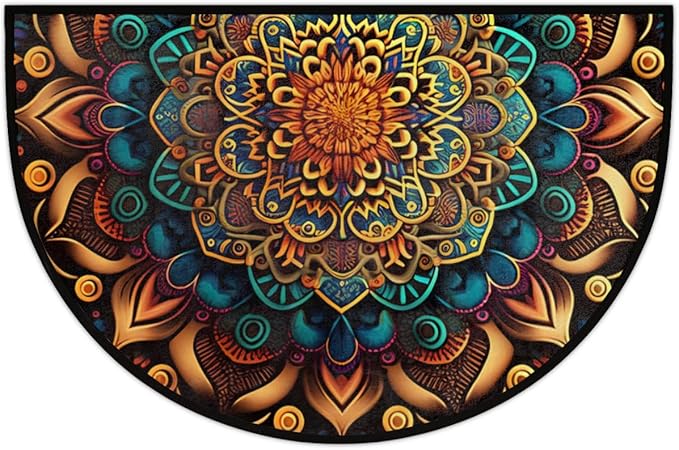 Mandala Half Round Door Mat, Ethnic Mandala Floral Semicircle Door Mats, Non Slip Area Rug Soft Doormat for Front Door Indoor Entrance Wear Resistant Welcome Mat for Garage Patio Home Decor 24 x 36 In