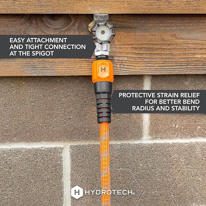 - STRAIN RELIEF GUARD: creates support from the connector to the garden hose, extending bend radius and stability