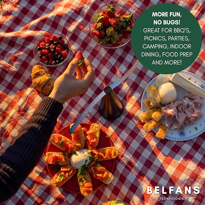 - Silent, Bug Repellent Fans-Unlike electric fly swatters, stinky sprays or sticky traps, our bug repelling fans are completely silent and eco-friendly. Great for camping, tailgates, picnics, BBQs, and more—protect your space without harsh chemicals or noise.