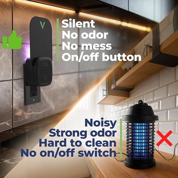 - STYLISH AND SIMPLE DESIGN: Featuring a sleek white and black design, this fruit fly killer integrates seamlessly with your decor. The light is directed towards the wall or floor to prevent direct exposure to your eyes.