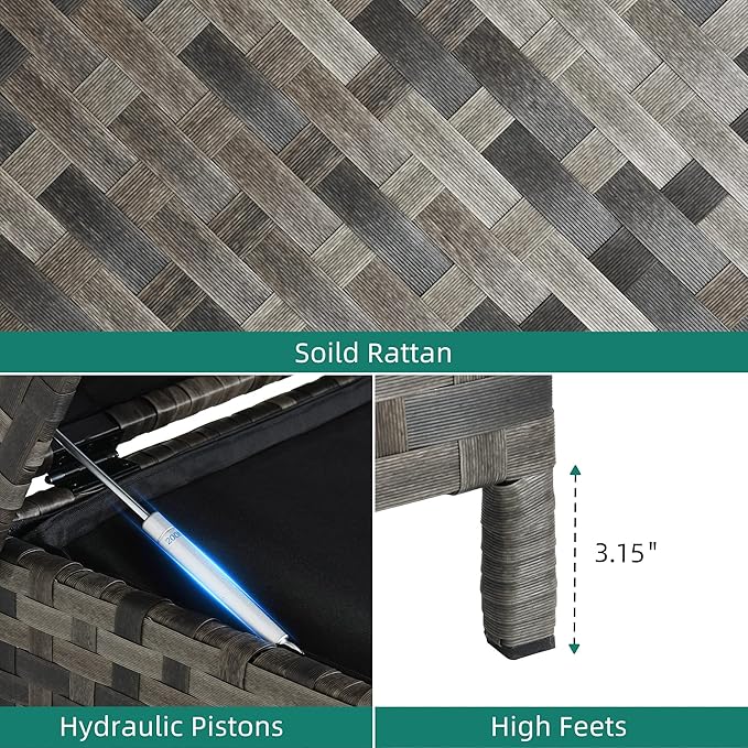 - Strong Water-repellent - Made from a durable-yet-stylish and waterproof wicker material. Flip open the lid, there is a zipper polyester storage bag to keep stored items dry and clean. Tall legs protect your deck box being seepage after a strong rain