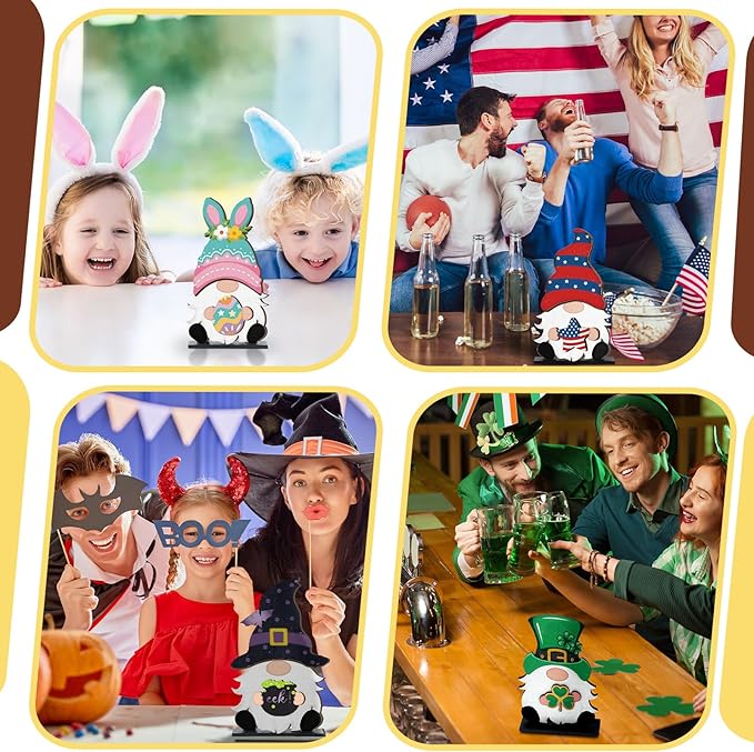 - Delicate Appearance: our DIY wooden interchangeable gnome sign is designed in a delicate appearance, and the changeable wood patterns feature pumpkins, snowflake, turkey, and so on, which can well satisfy your different decorative demands