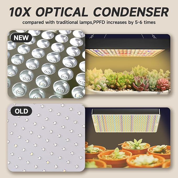 - 🍂PLANT LIGHT WITH SCIENTIFIC LED DIODES RATIO— This professional grade plant grow light can better satisfy the plant's desire for light through the application of different spectral LED. Include 42pcs red light&4pcs blue light&92pcs 5000K white light&6pcs IR&4pcs purple light&140pcs Warm White Light.