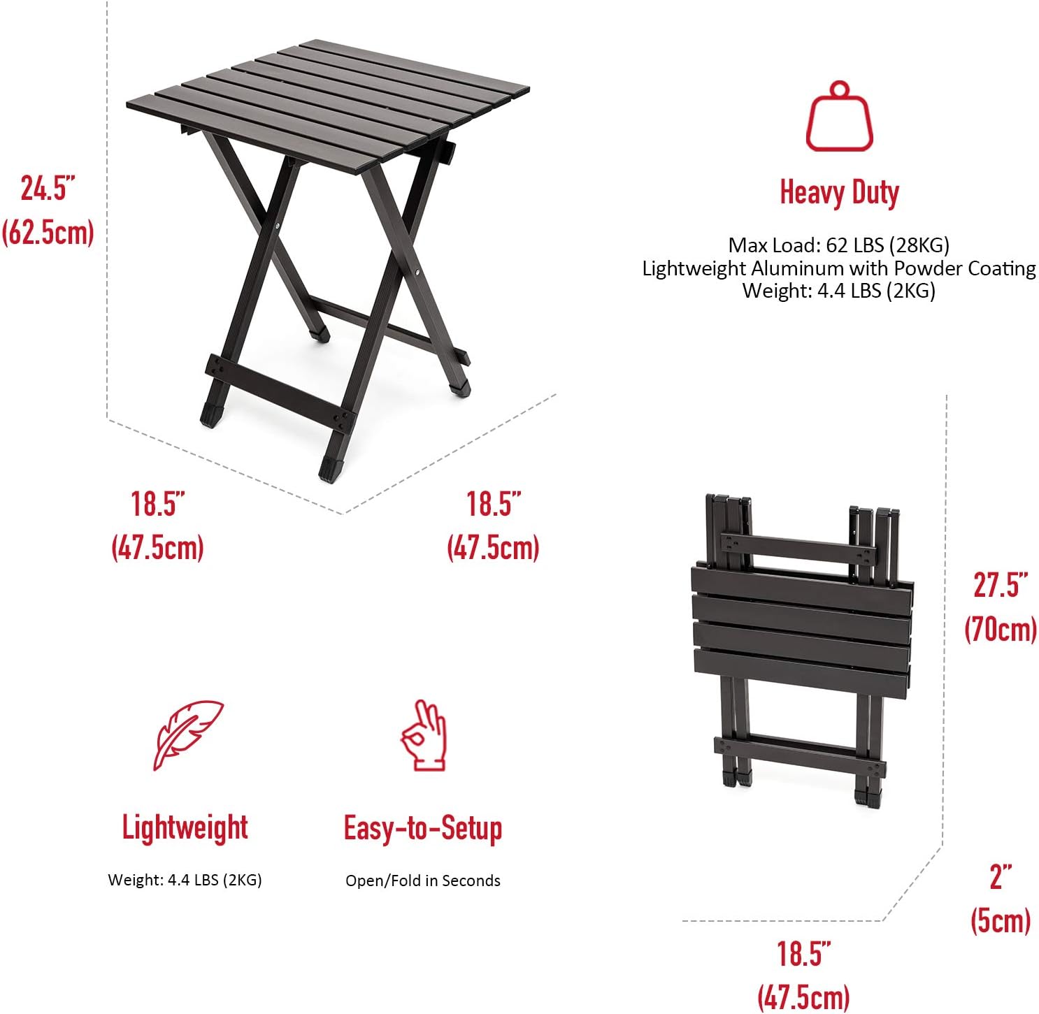 - Compact Folding Camping Side Table: Lightweight Aluminum Portable Picnic Table, 18.5x18.5x24.5 Inch for Cooking, Beach, Hiking, Travel, Fishing, BBQ, Indoor Outdoor Small Foldable Camp Tables