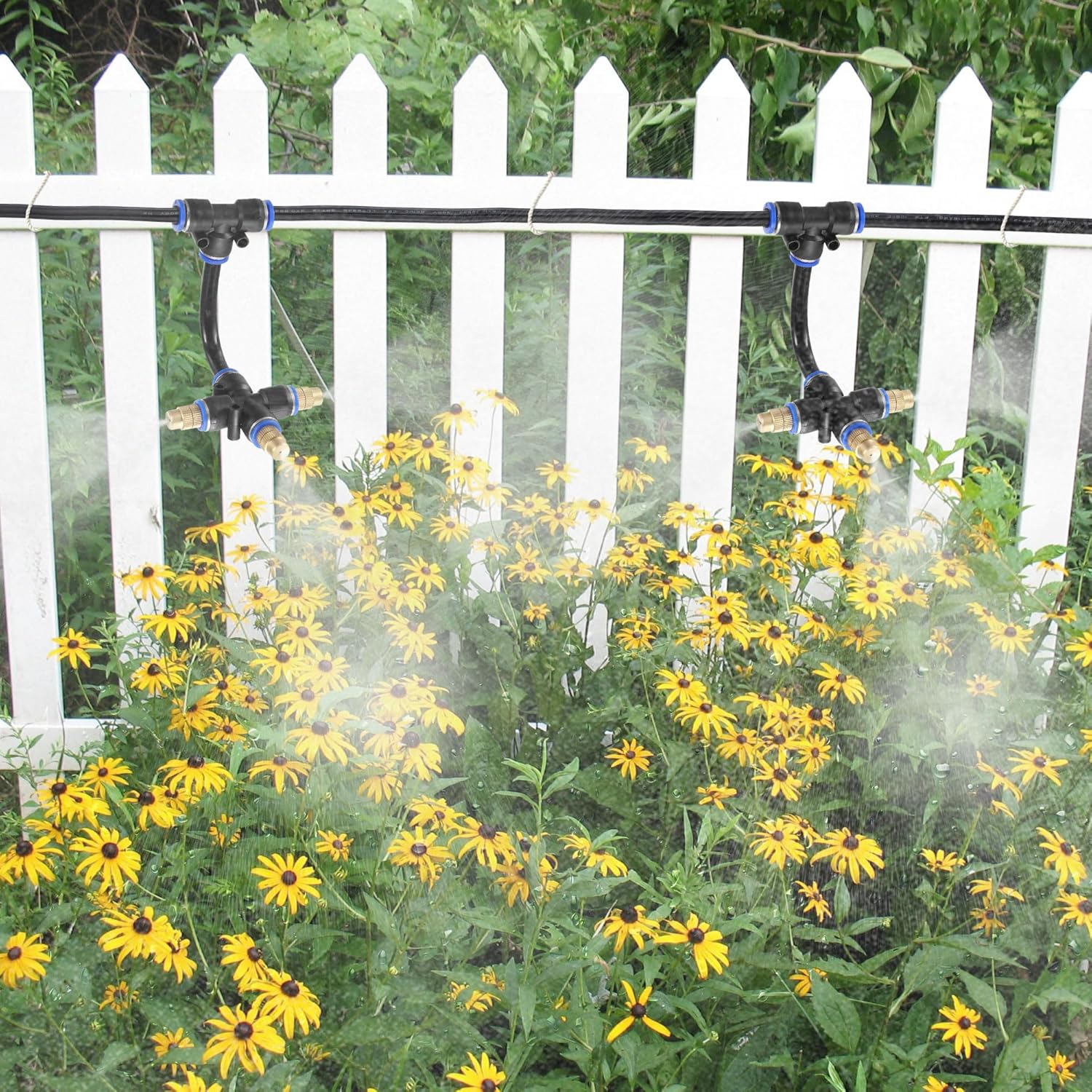 - 【Misting Range】: 30-50 inch, cools the surrounding air temperatures up to 20 degrees. These misting nozzles tee can be connected to most 0.32inch/8mm water hose, nylon tube or polyurethane tubes to make fan misting system, mist cooling system, plant watering system and patio misting system. The water pressure is recommended to be above 2kg/mpa, water volume is 24L per hour, the water volume is 72L per hour. The longer the hose length, the greater the water pressure required.