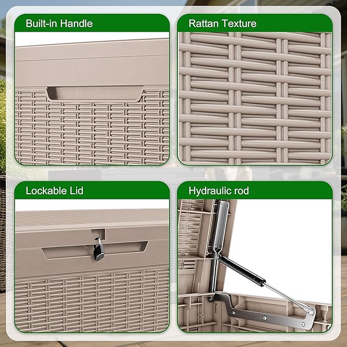 - All-Weather Waterproof Protection:Made with high-quality waterproof materials, this deck box keeps your belongings dry and safe from rain, snow, and humidity year-round.
