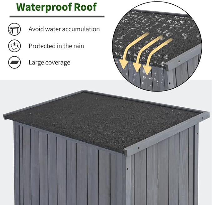 - Fir Solid Wood: The garden shed is made of high-quality pure fir wood, and the exterior has been polished to express a rustic style. Natural Color blends easily with other décor and natural settings.
