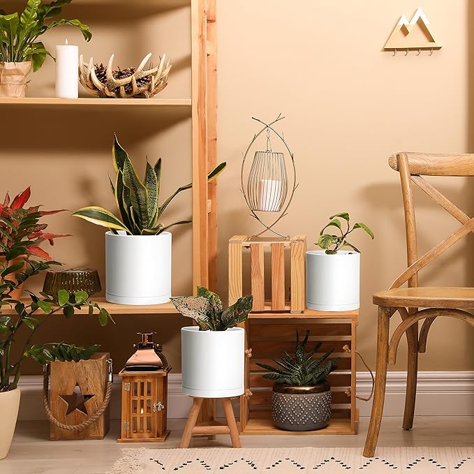 - Seamless & Minimalist Design: Modern straight cylinder shaped planter pots with drainage hole and seamless detachable saucer.