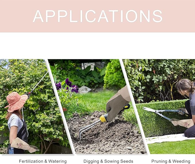 - 【Protective Rose Gloves】The soft synthetic leather palm ensures flexibility and grip of the glove. Flexible fingers for easy grasping of planting tools. .And you can wear our gloves to protect yourself from toxic chemicals and pest bites during digging,transplanting,fertilizing,pruning flowers,digging soil, removing weeds, dealing with dead branches,picking fruits,garden decoration, etc.