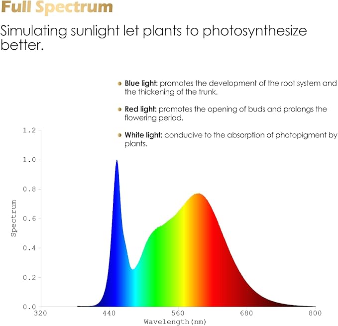 - 【6W Full-Spectrum Plant Light】: The compact growth light features high-quality, super-bright LEDs that emit wavelengths ranging from 380nm to 800nm, including 5000K White Light, 3000K Warm Light, 4000K White Light, and Warm Light. This plant growth light accelerates photosynthesis, effectively promoting the growth of indoor plants. It is ideal for various stages of growth for herbs, succulents, orchids, tomatoes, and more.