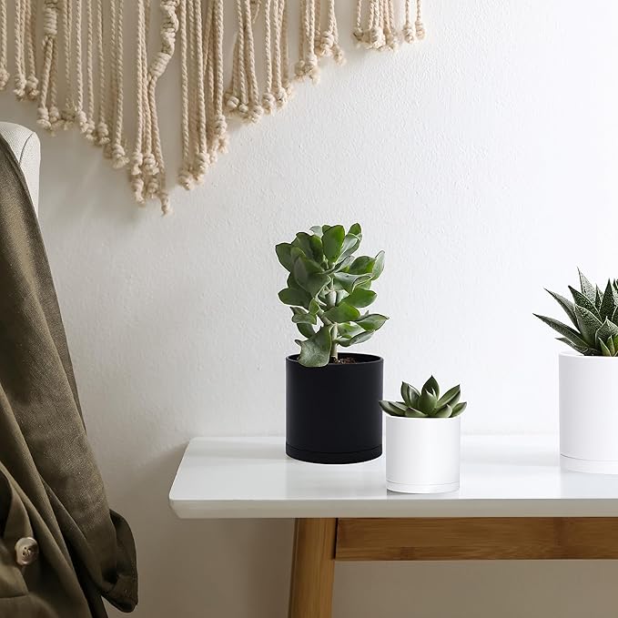 - Seamless & Minimalist Design: Modern straight cylinder shaped planter pots with drainage hole and seamless detachable saucer.