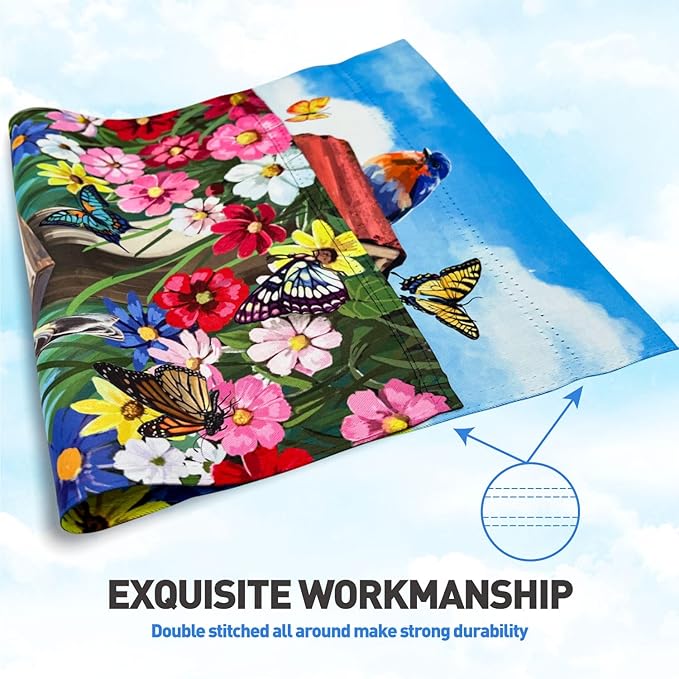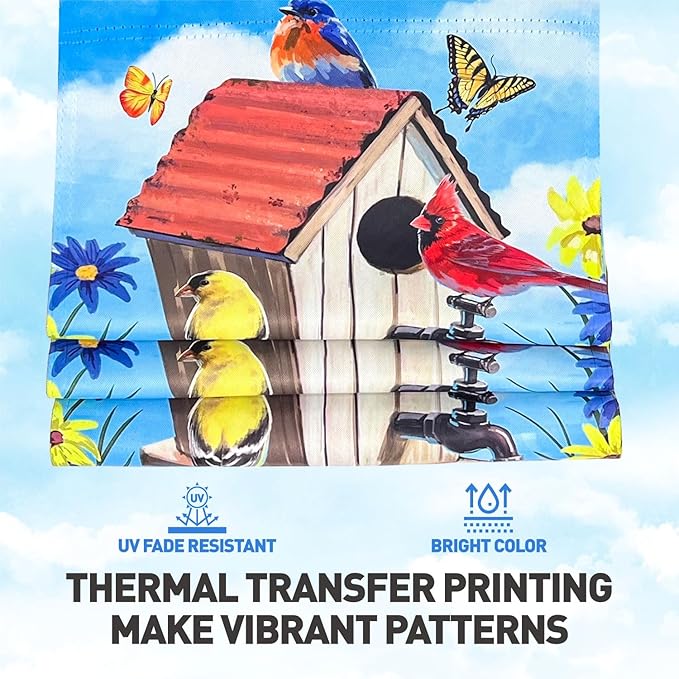 - HIGH QUALITY: Durable outdoor Red Cardinals Bluebirds Birdhouse garden flags are made of machine washable polyester blackout material, double stitching panels on multiple rows and high quality sleeve to provide lasting strength and are UV/fade- resistant to keep them flying for many seasons.