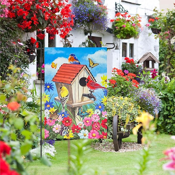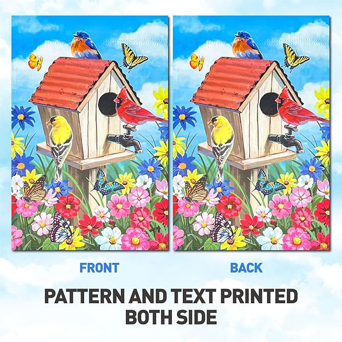 - DOUBLE SIDED:Vigor Home Red Cardinals Bluebirds Birdhouse Garden Flag is designed double sided with the pattern printed and visible from both sides and text also clearly reads correctly from both sides, that may be hung indoor or outdoor.