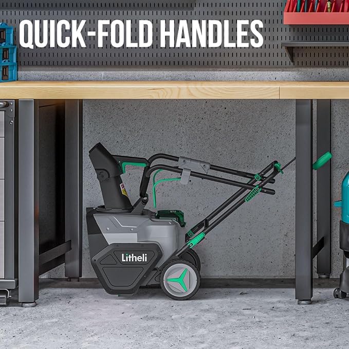 - 【CONVENIENT DESIGN】 Equipped with foldable and height adjustable handle,Litheli cordless snow blower is light-weight design only weighing for 50 lbs, easy storage and comfortable use.