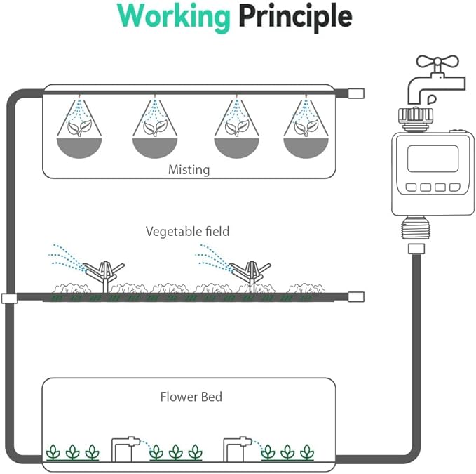 - WEATHER-RESISTANT DESIGN FOR OUTDOOR USE: Our smart sprinkler timer features a protective cover, shielding it from harsh weather while keeping the water timer for garden hose functional. Designed for any garden timers for watering, this water timers for hoses programmable model ensures continuous irrigation. Ideal for a sprinkler system, garden irrigation system, or water system for garden, providing long-term performance.
