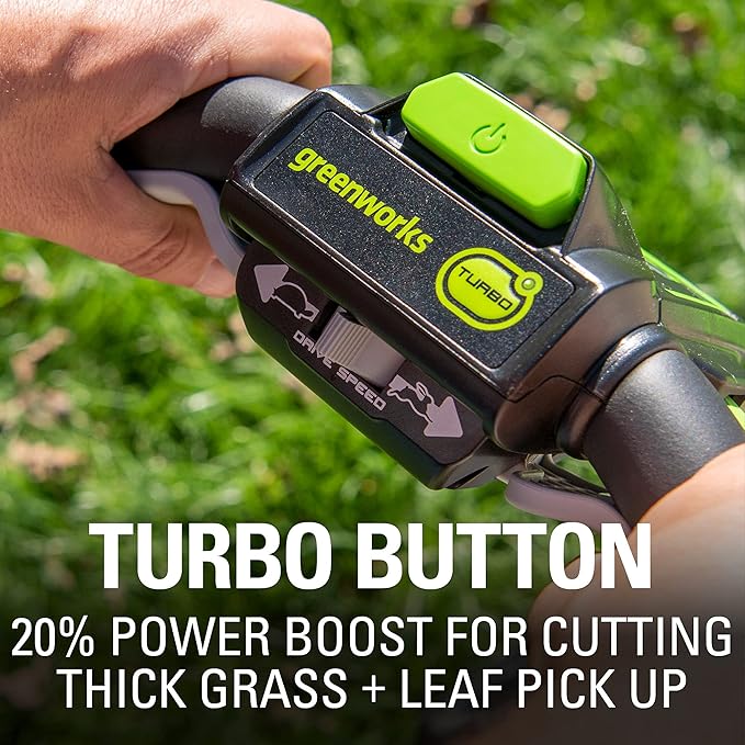 - The Greenworks 2x24V 21β Self-Propelled Mower features the most advanced power-cutting system in the industry. Where gas mowers bog down, our intelligent mower senses grass conditions to send optimal power to the 48V brushless motor, maintaining consistent blade speeds of 3,250 RPM through tall, thick, and wet grass.