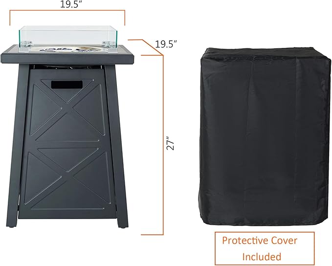 - Wind Glass Shield & Lid : It includes a square glass shield that offers wind protection. When not in use, the included lid allows the outdoor gas fire pit to convert into a versatile outdoor table.