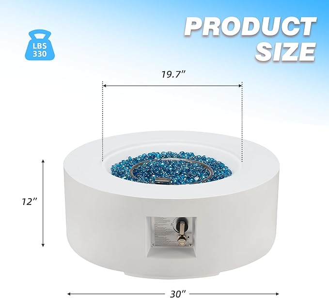 - Dimensions & Packing Included: Table Size: 30"Diameter x12"H. Package includes fire pit table with stainless steel lid, weather resistant cover, decorative lava rocks and product manual