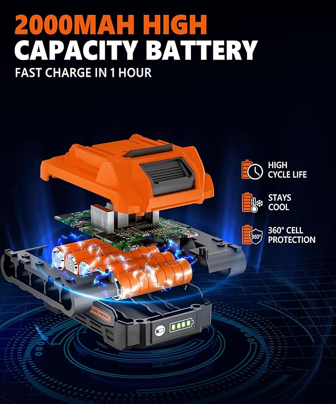 - 【20V Large Capacity Batteries】Removable and rechargeable 2000mAh lithium battery with real-time capacity indicator, compatible with Makita batteries.
