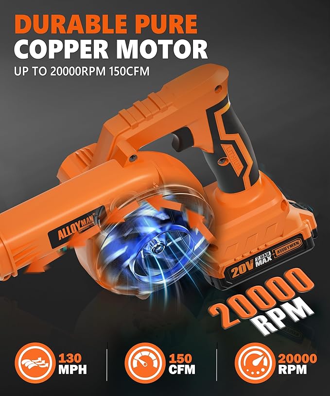 Alloyman Leaf Blower, 20V Cordless Leaf Blower, Leaf Blower Cordless with 2.0Ah Battery and Charger, Electric Leaf Blower for Yard Cleaning/Snow Blowing.