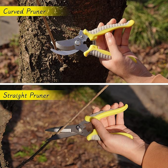 - 【Intimate Design】The pruning shears are equipped with safety locks, which can close the sharp blades when not in use, so as to avoid injury. There are springs between the handles, which makes pruning more labor-saving.