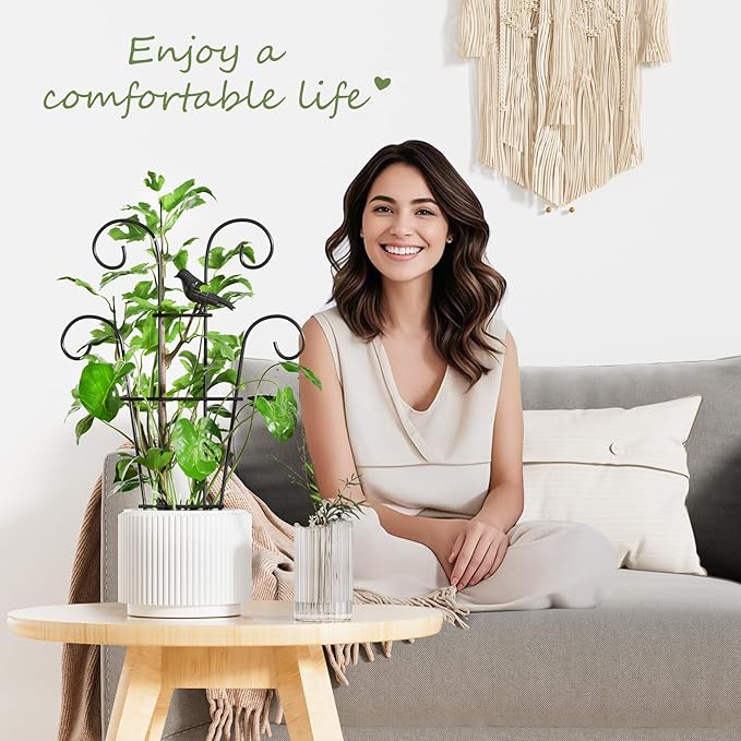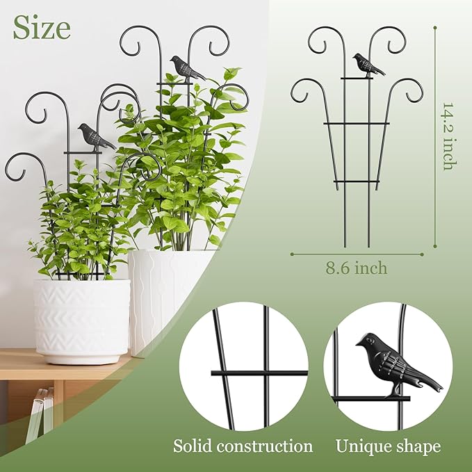 - Bird Design: Every one standing at 14.2 inches tall, these trellises provide excellent support for climbing plants to allowing potted plants to grow upwards and help them get more sunlight to prevent sagging.
