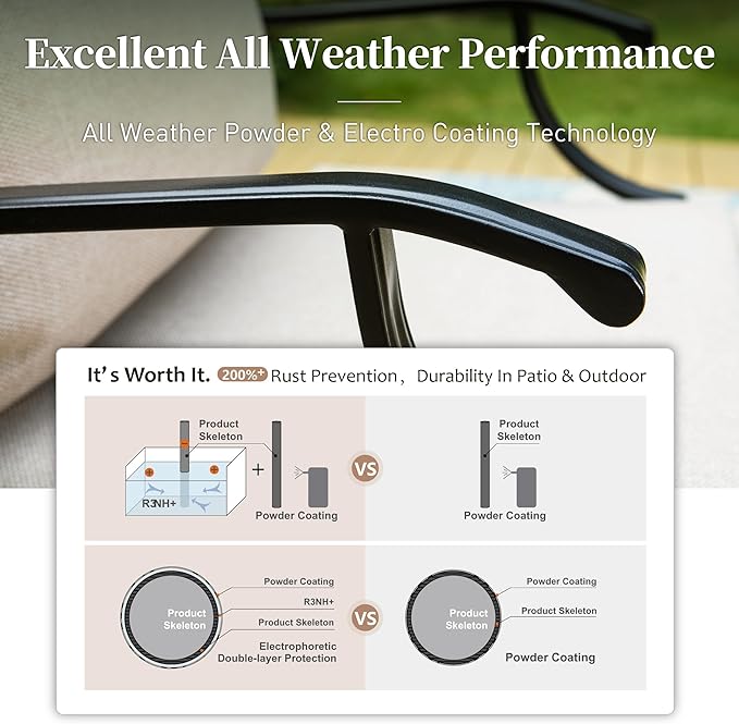 - ALL WEATHER HEAVY-DUTY FRAME: This metal backyard furniture set is made of high-performance E-COATING and POWDER-COATING dual rust prevention techniques that are All weather resistant, anti-rust, and easy to clean, with no special care needed. That patio conversation set has a heavy-duty wrought iron metal frame, The single chairs could support up to 350 lbs weight and the 3-seater sofa supports 900 lbs